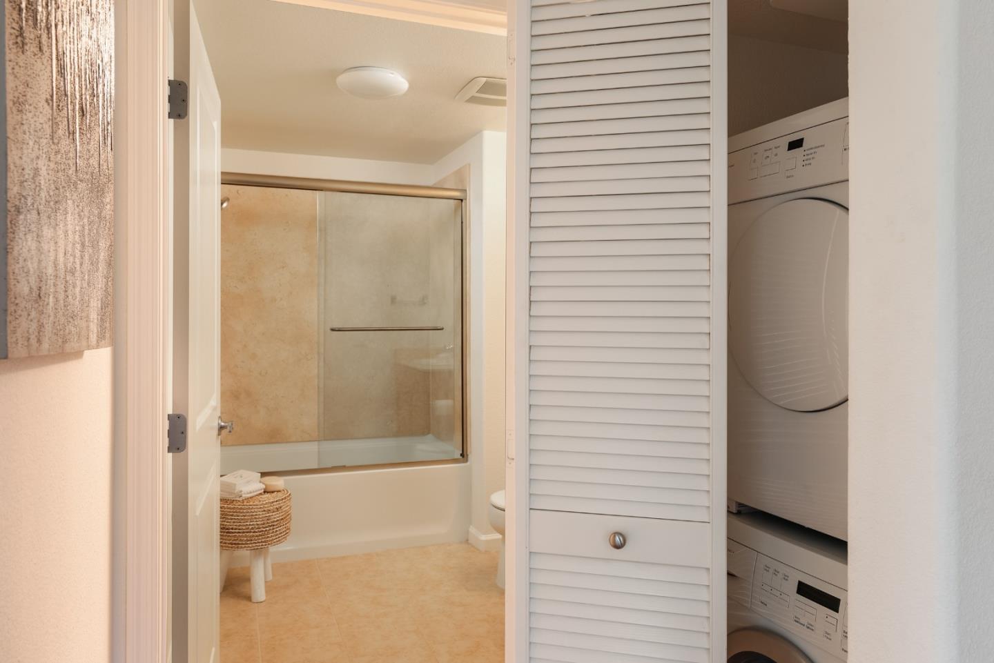 Discover the rare opportunity to own a meticulously maintained corner unit condo in the highly sought-after Metropolitan at Cupertino community. With minimal recent sales and no rental restrictions, this residence is perfect for long-term residence or investment. The pride of ownership is evident as the original owner has carefully maintained the condo, featuring cherry wood floors, premium carpet in bedrooms & Hunter Douglas shades throughout. Recent upgrades in 2023, including new tile in bathrooms, a new water heater & a Nest, enhance the modern comfort & efficiency of the home. The newer dishwasher (2021), new LED lighting & electrical switches further contribute to the functionality of the living spaces. Enjoy the tranquility of this unit, with only one partially-shared wall, offering interior views of the courtyard, as well as exterior views of mature landscaping. Steps away from Main St Cupertino, residents can indulge in green spaces & abundant options for dining & shopping. Commuting is a breeze with access to local freeways and proximity to Apple Park. This condo presents a rare opportunity to experience a harmonious blend of comfort, convenience, and a vibrant lifestyle.