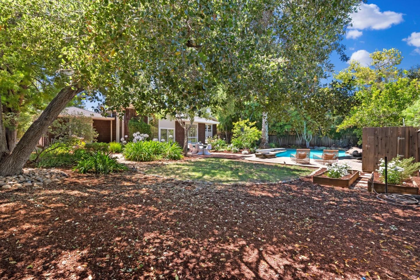 An extraordinary home nestled in the North of Los Altos, this home offers luxury living with its seamless fusion of elegance, meticulous design, and unparalleled accessibility. Perfectly situated for commuters, it caters to discerning buyers who appreciate both sophistication and convenience.This distinguished home boasts two primary suites, generously-sized bedrooms, and a study retreat with a wood-burning fireplace. The grand living room features soaring ceilings, there is a formal dining room and expansive family room graced with vaulted ceilings and floor-to-ceiling windows that invite an abundance of natural light. The lushly landscaped grounds evoke the ambiance of a private resort, complete with a shimmering pool and spa, a classic diving board. Every day feels like a vacation in this serene oasis. Positioned within one of the Bay Area's most prestigious neighborhoods, this residence offers proximity to renowned top-rated schools and the charm and convenience of downtown Los Altos. For those in pursuit of an extraordinary lifestyle at the epicenter of it all, this home extends an invitation to an unparalleled living experience.