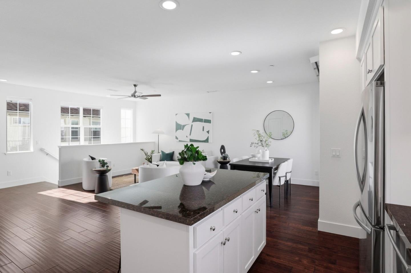 Modern, light-filled 3-bedroom townhome in the heart of Downtown Sunnyvale, offering an exceptional blend of style, comfort, and location. The open-concept kitchen features granite countertops, a generous island, and stainless steel appliances, flowing seamlessly into the dining and living areas perfect for everyday living and entertaining. Sunlight pours through the home, highlighting the spacious layout and three well-proportioned bedrooms. Convenient upstairs laundry adds ease, while a paver patio provides an inviting outdoor retreat. The attached garage includes an EV charger, complemented by ample community parking. Unmatched downtown location just steps from Caltrain, Whole Foods, Target, Philz Coffee, the Farmers Market, AMC Theaters, the public library, and more. A commuters dream with quick access to Caltrain, El Camino Real, Central and Lawrence Expressways, Highways 237 & 85, and Interstate 101plus easy reach to major technology campuses. Truly an incomparable location for modern Silicon Valley living.