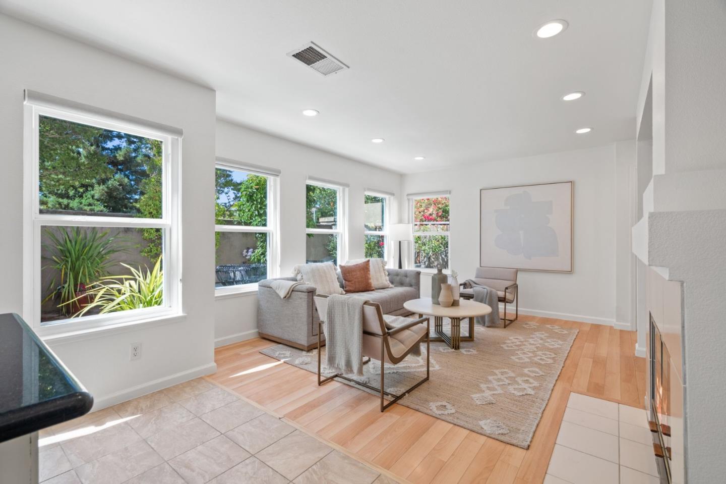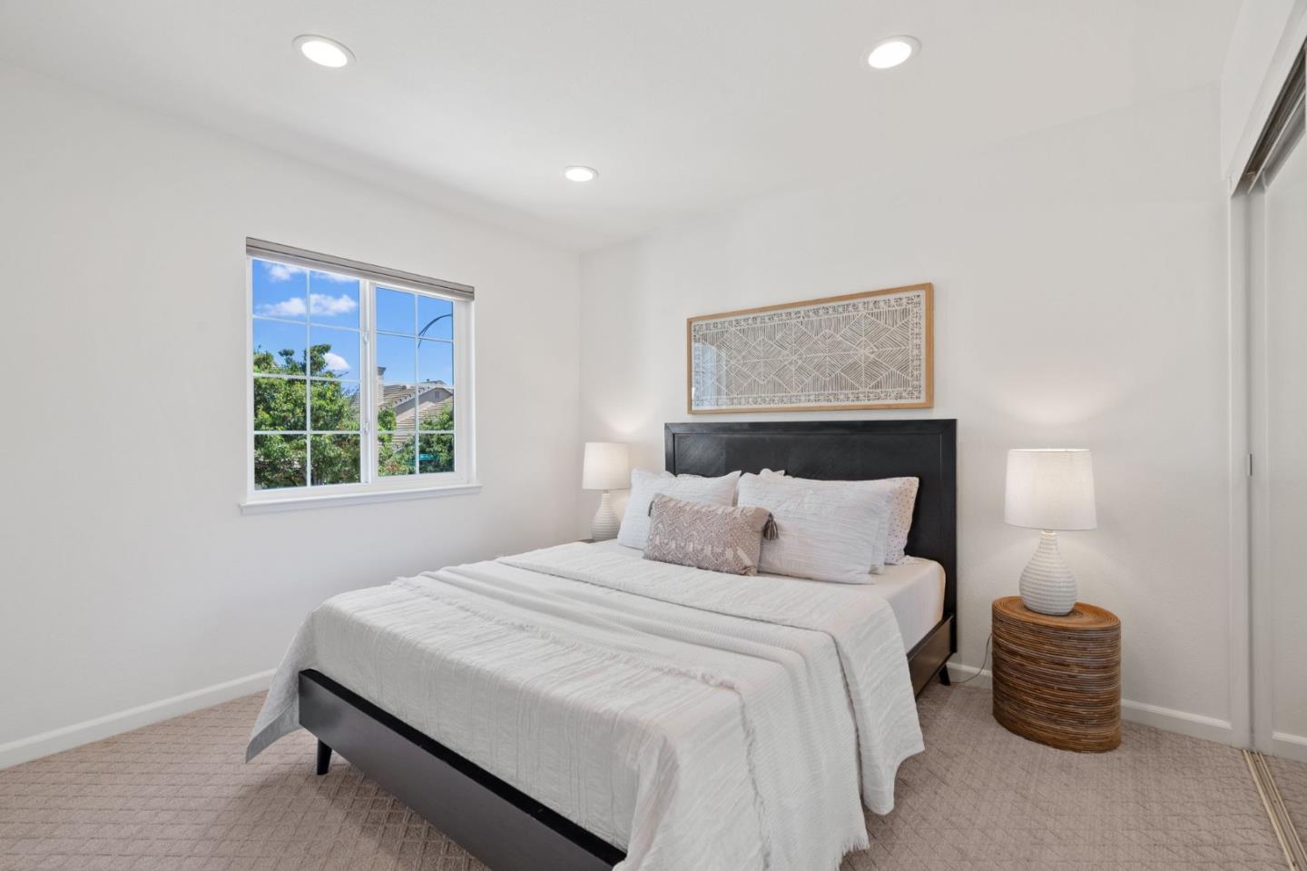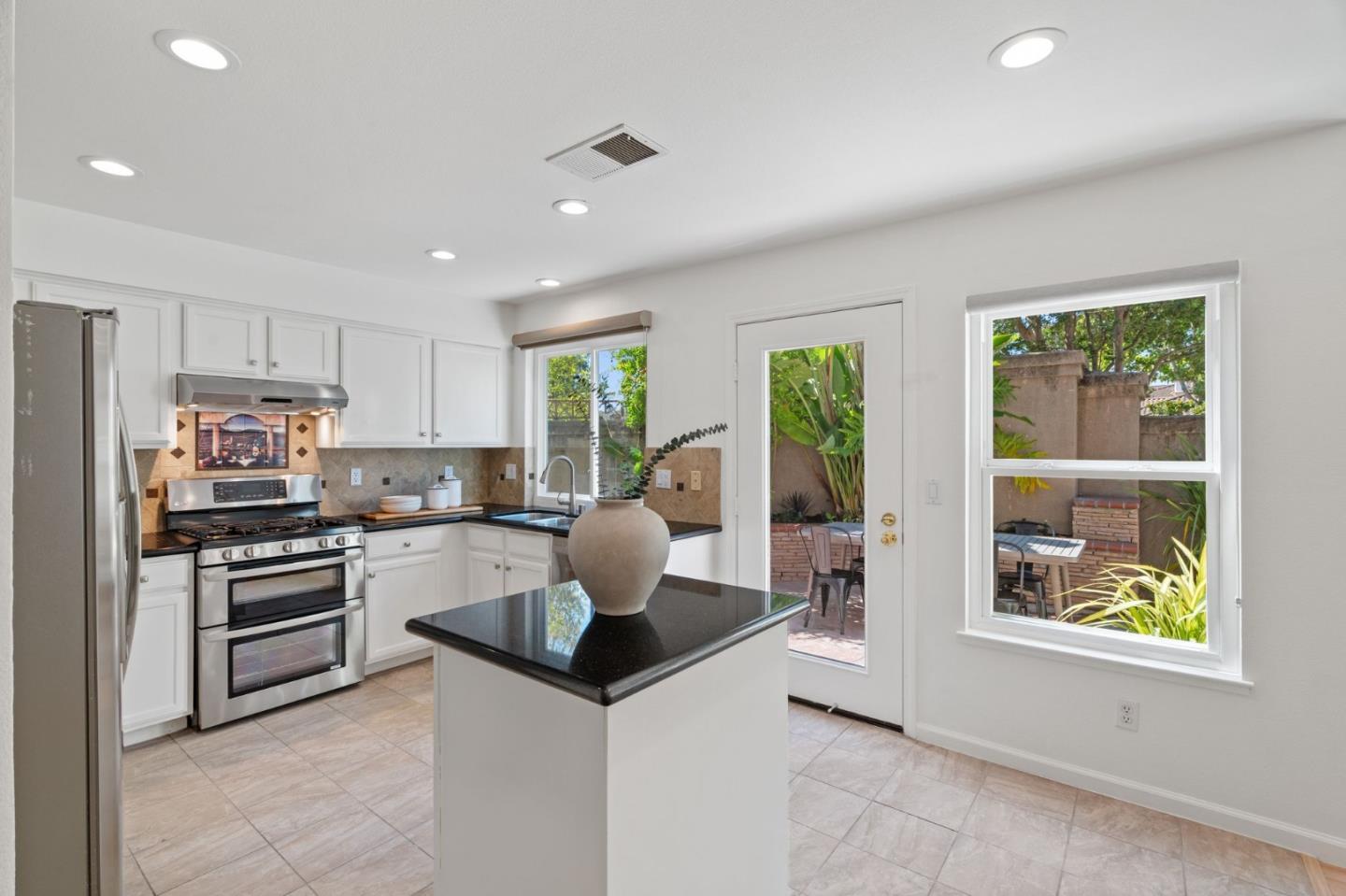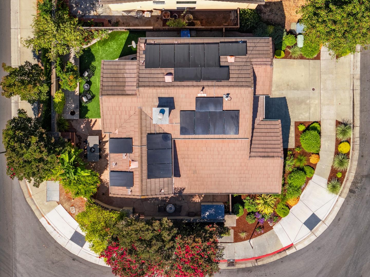 A beautiful single-family home in the desirable California Impressions community offers abundant light, high ceilings, modern upgrades, and no HOA. Featuring 3 bedrooms and 2.5 baths, the residence showcases a remodeled guest bath, new carpets upstairs, and all-new windows throughout. A chef-friendly kitchen opens to the family room with built-ins, while storage solutions are thoughtfully integrated in every bedroom, the family room, and garage. Enjoy fully owned solar, a Tesla charger, and an inviting finished backyard retreat with California-style landscaping in front. Window treatments are updated and add a polished look throughout. Everyday conveniences include laundry and two-car garage. Perfectly located near Rivermark Plaza, Guadalupe River Trail, tech campuses, Levis Stadium, and freeways 237/680/880/101, this home combines lifestyle, efficiency, and value in one of San Joses most connected neighborhoods.