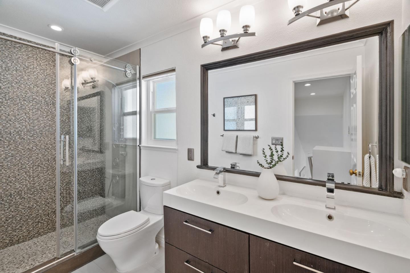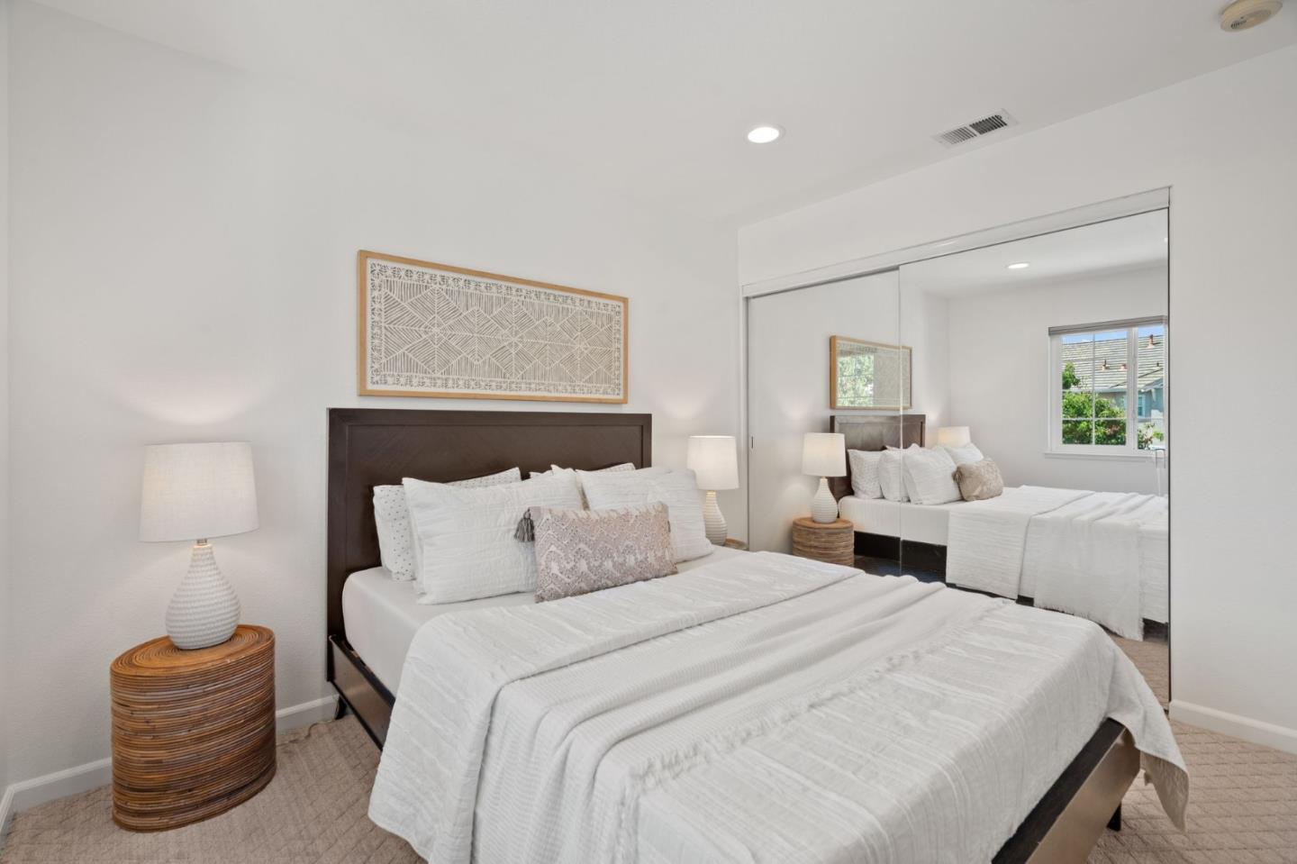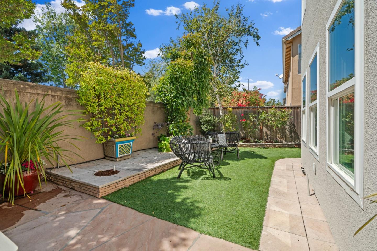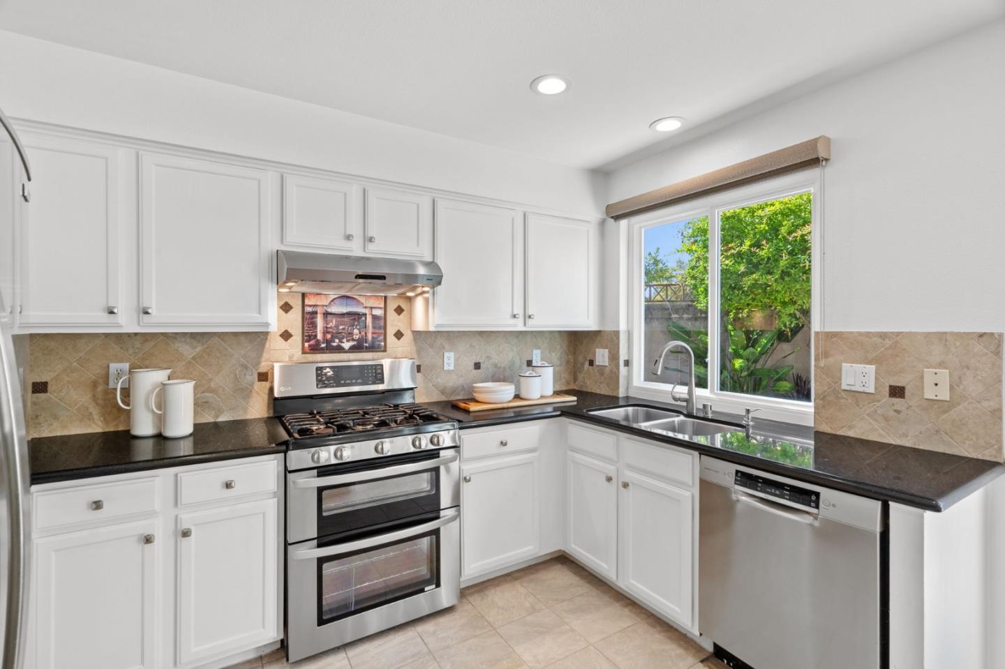 A beautiful single-family home in the desirable California Impressions community offers abundant light, high ceilings, modern upgrades, and no HOA. Featuring 3 bedrooms and 2.5 baths, the residence showcases a remodeled guest bath, new carpets upstairs, and all-new windows throughout. A chef-friendly kitchen opens to the family room with built-ins, while storage solutions are thoughtfully integrated in every bedroom, the family room, and garage. Enjoy fully owned solar, a Tesla charger, and an inviting finished backyard retreat with California-style landscaping in front. Window treatments are updated and add a polished look throughout. Everyday conveniences include laundry and two-car garage. Perfectly located near Rivermark Plaza, Guadalupe River Trail, tech campuses, Levis Stadium, and freeways 237/680/880/101, this home combines lifestyle, efficiency, and value in one of San Joses most connected neighborhoods.