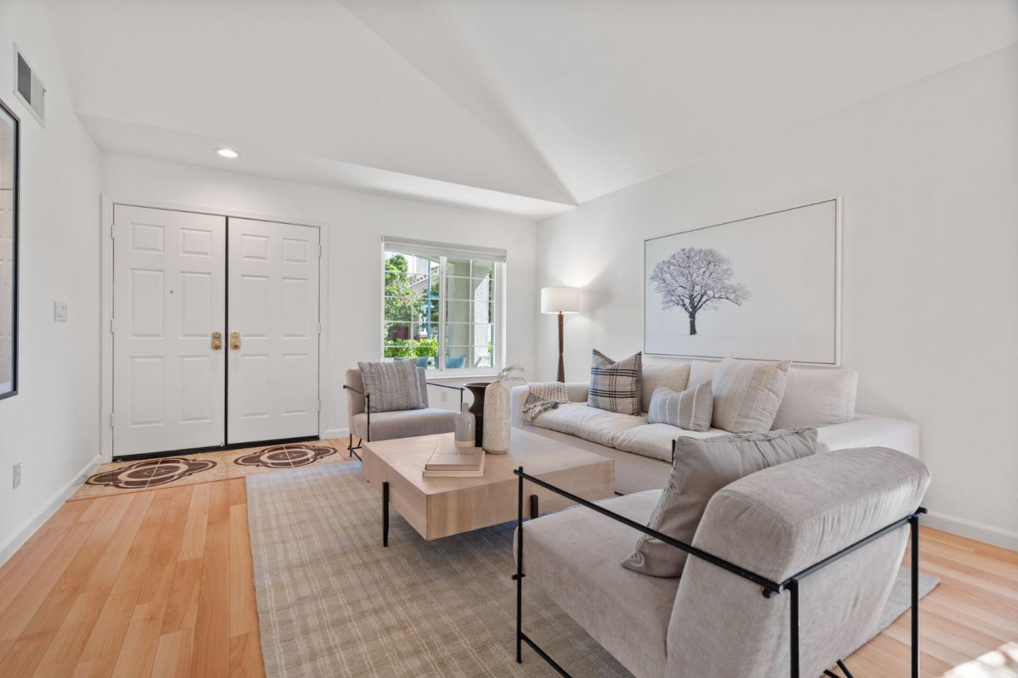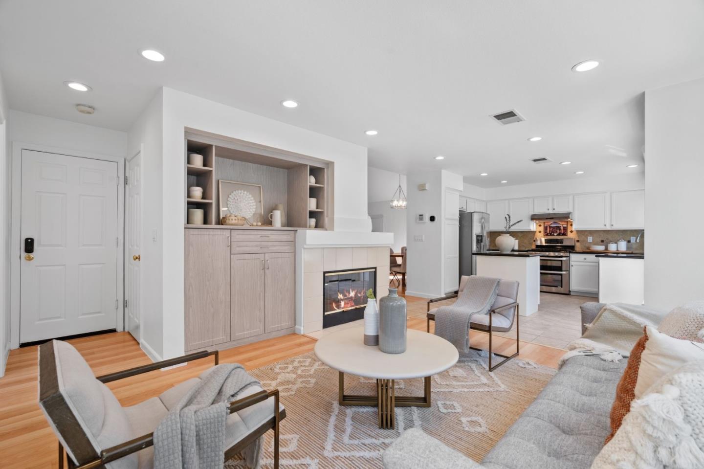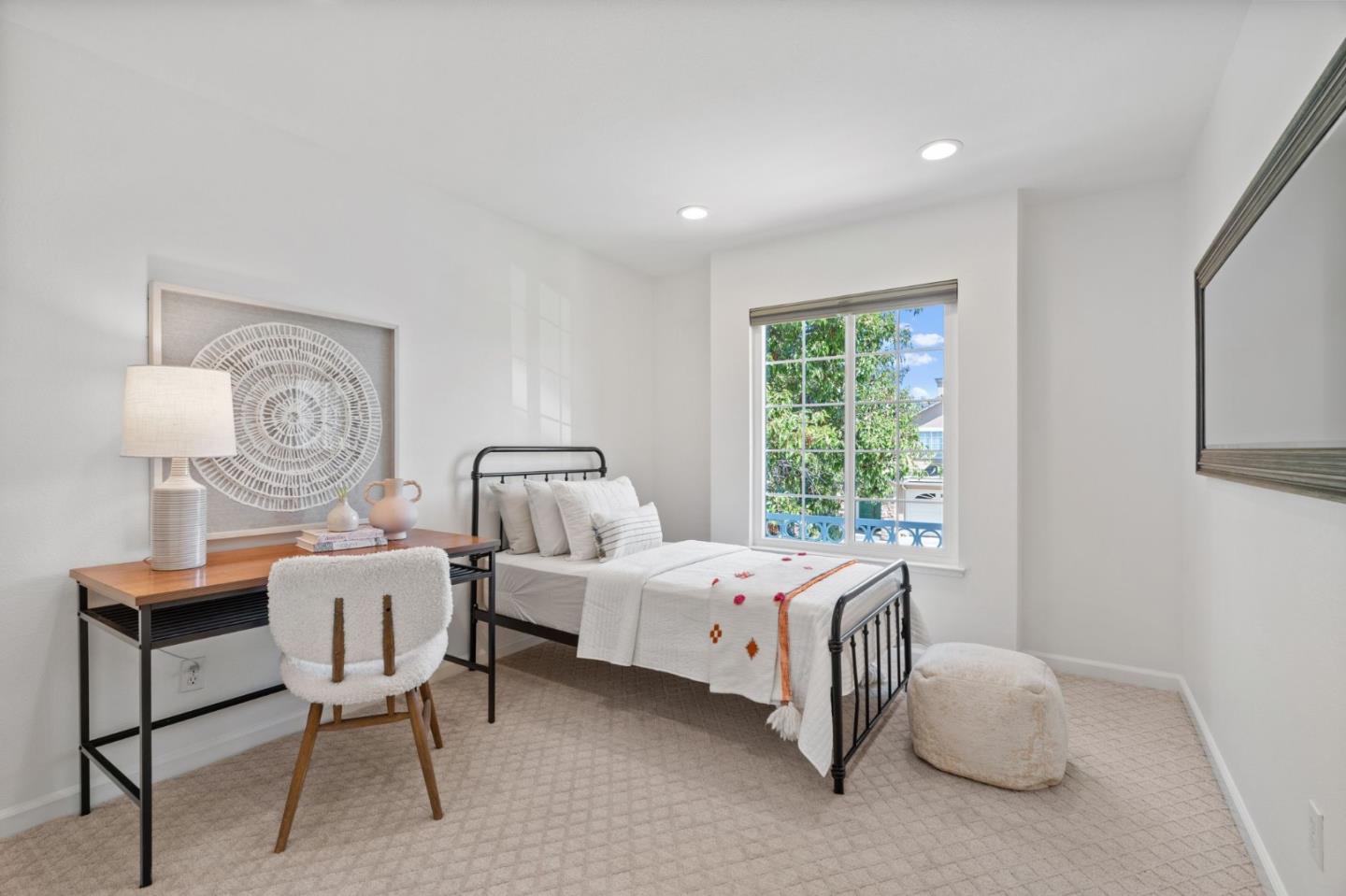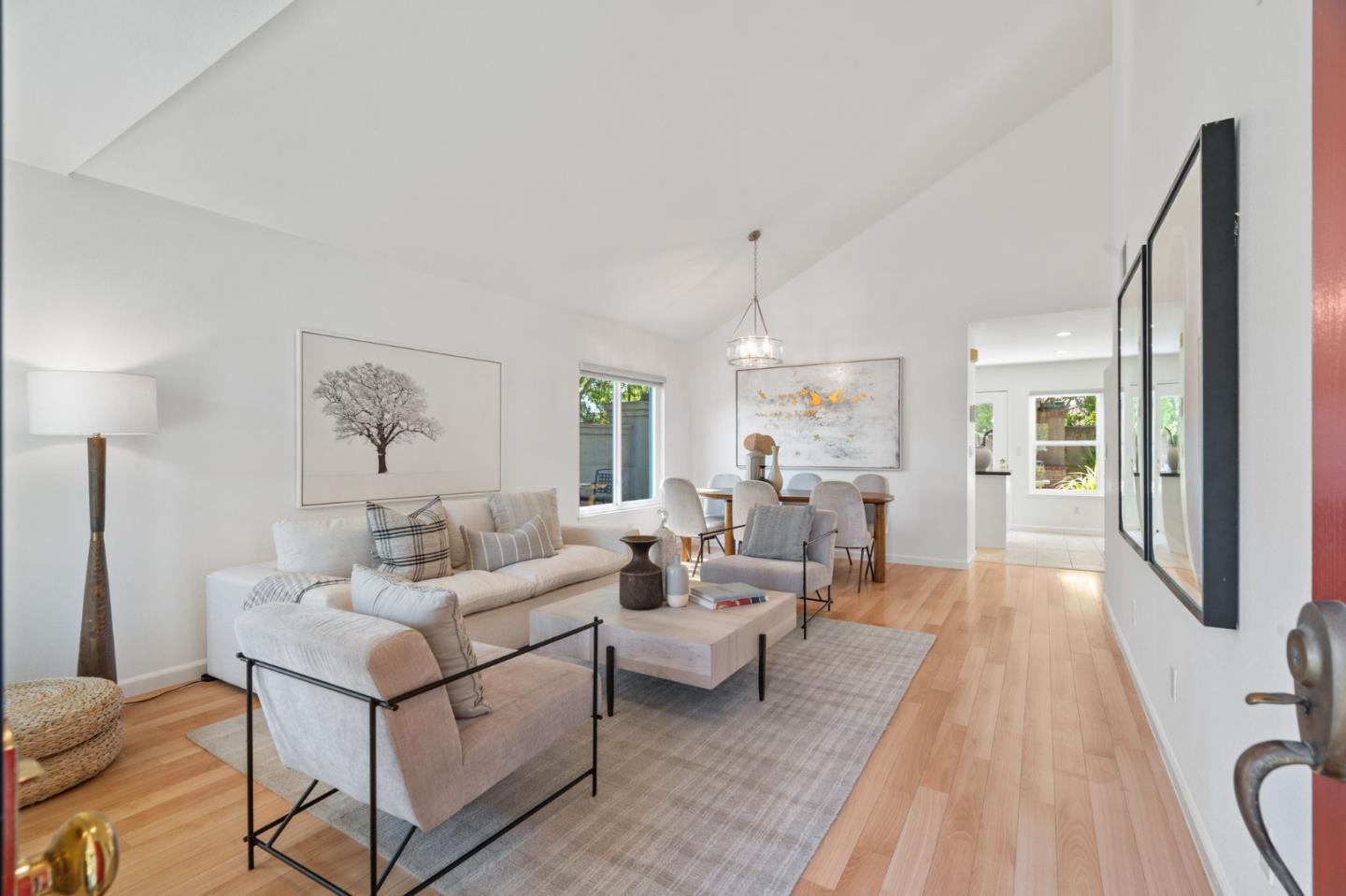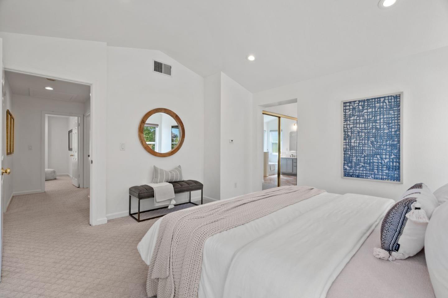 A beautiful single-family home in the desirable California Impressions community offers abundant light, high ceilings, modern upgrades, and no HOA. Featuring 3 bedrooms and 2.5 baths, the residence showcases a remodeled guest bath, new carpets upstairs, and all-new windows throughout. A chef-friendly kitchen opens to the family room with built-ins, while storage solutions are thoughtfully integrated in every bedroom, the family room, and garage. Enjoy fully owned solar, a Tesla charger, and an inviting finished backyard retreat with California-style landscaping in front. Window treatments are updated and add a polished look throughout. Everyday conveniences include laundry and two-car garage. Perfectly located near Rivermark Plaza, Guadalupe River Trail, tech campuses, Levis Stadium, and freeways 237/680/880/101, this home combines lifestyle, efficiency, and value in one of San Joses most connected neighborhoods.