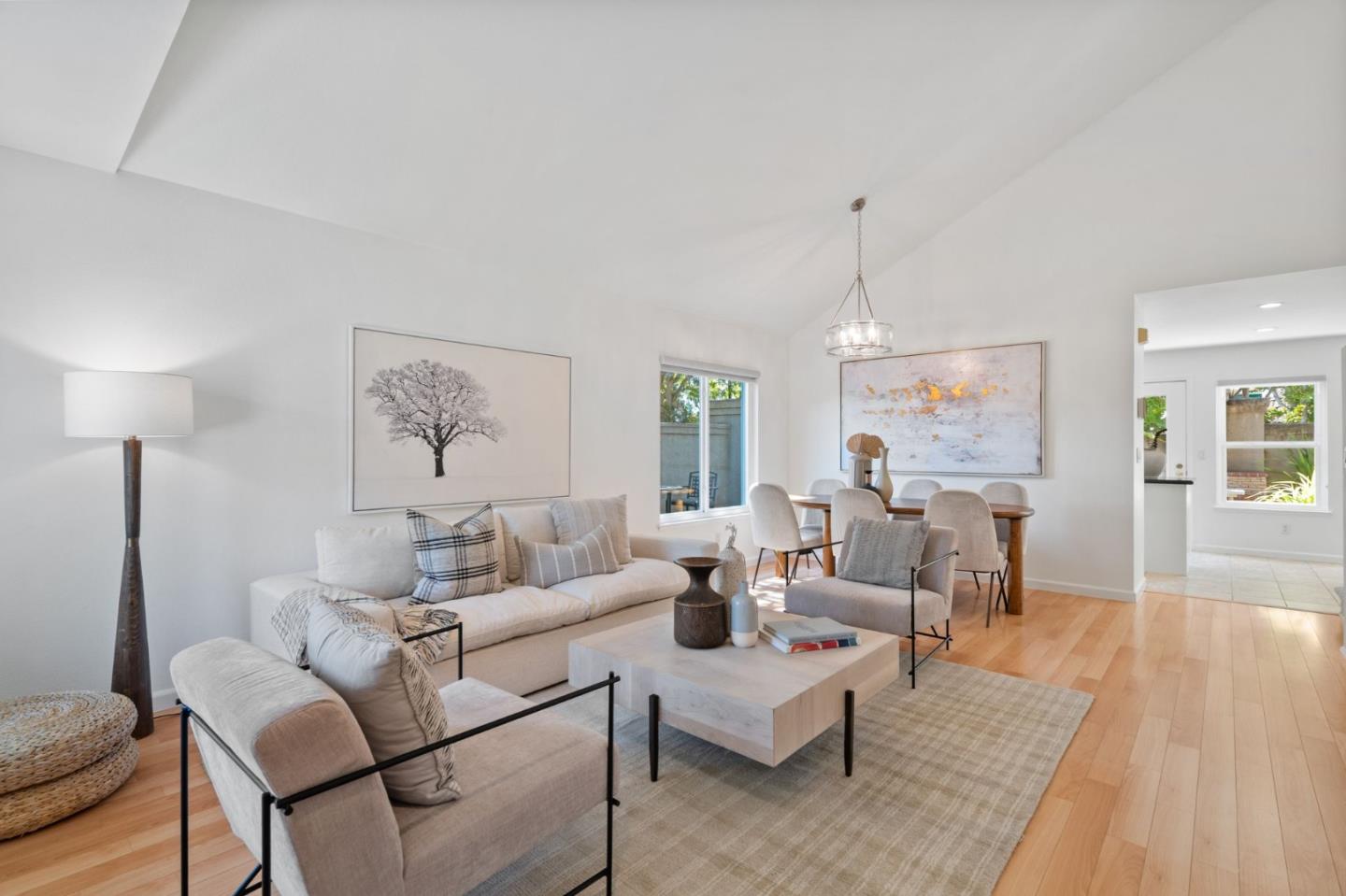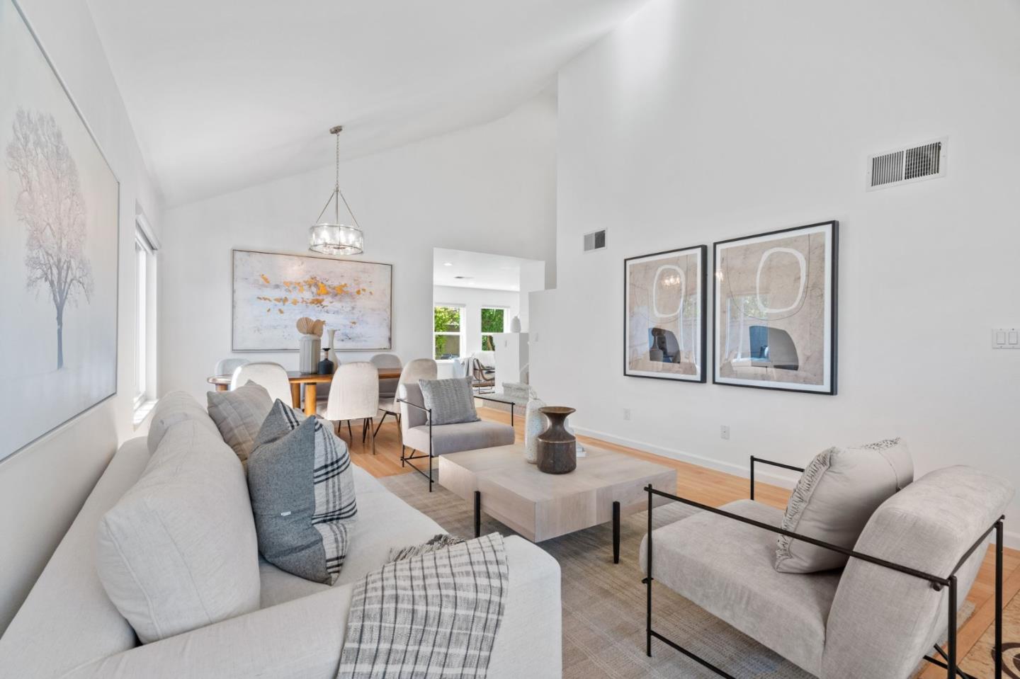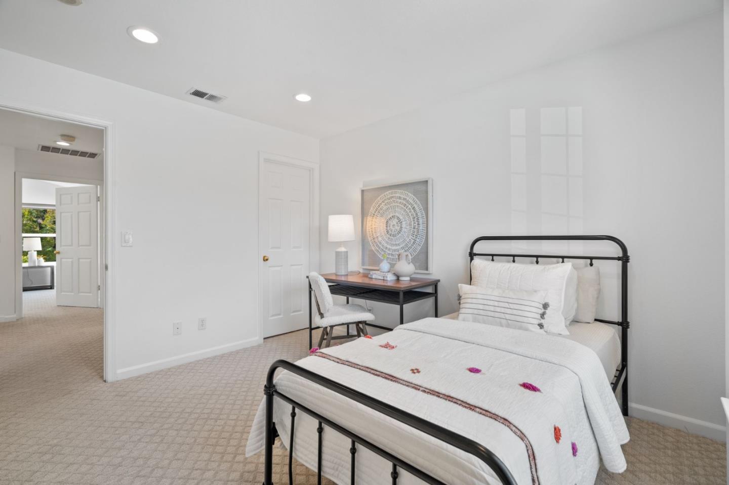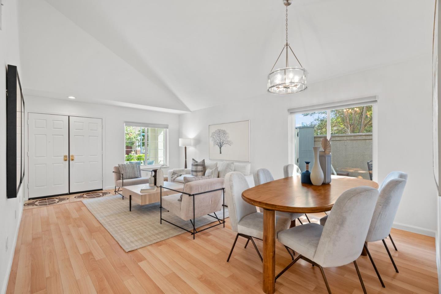 A beautiful single-family home in the desirable California Impressions community offers abundant light, high ceilings, modern upgrades, and no HOA. Featuring 3 bedrooms and 2.5 baths, the residence showcases a remodeled guest bath, new carpets upstairs, and all-new windows throughout. A chef-friendly kitchen opens to the family room with built-ins, while storage solutions are thoughtfully integrated in every bedroom, the family room, and garage. Enjoy fully owned solar, a Tesla charger, and an inviting finished backyard retreat with California-style landscaping in front. Window treatments are updated and add a polished look throughout. Everyday conveniences include laundry and two-car garage. Perfectly located near Rivermark Plaza, Guadalupe River Trail, tech campuses, Levis Stadium, and freeways 237/680/880/101, this home combines lifestyle, efficiency, and value in one of San Joses most connected neighborhoods.