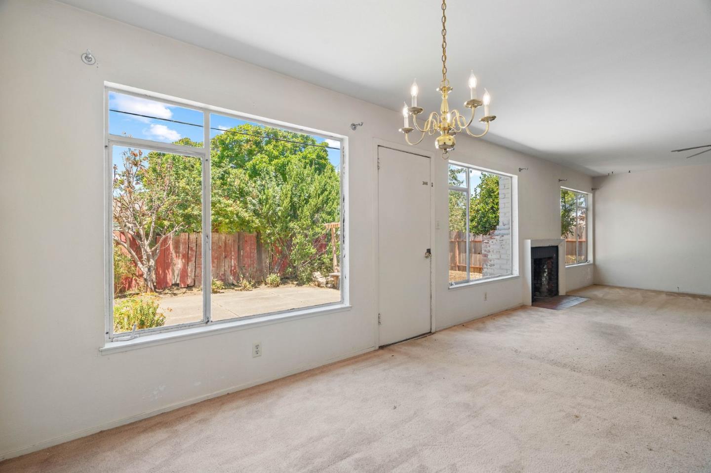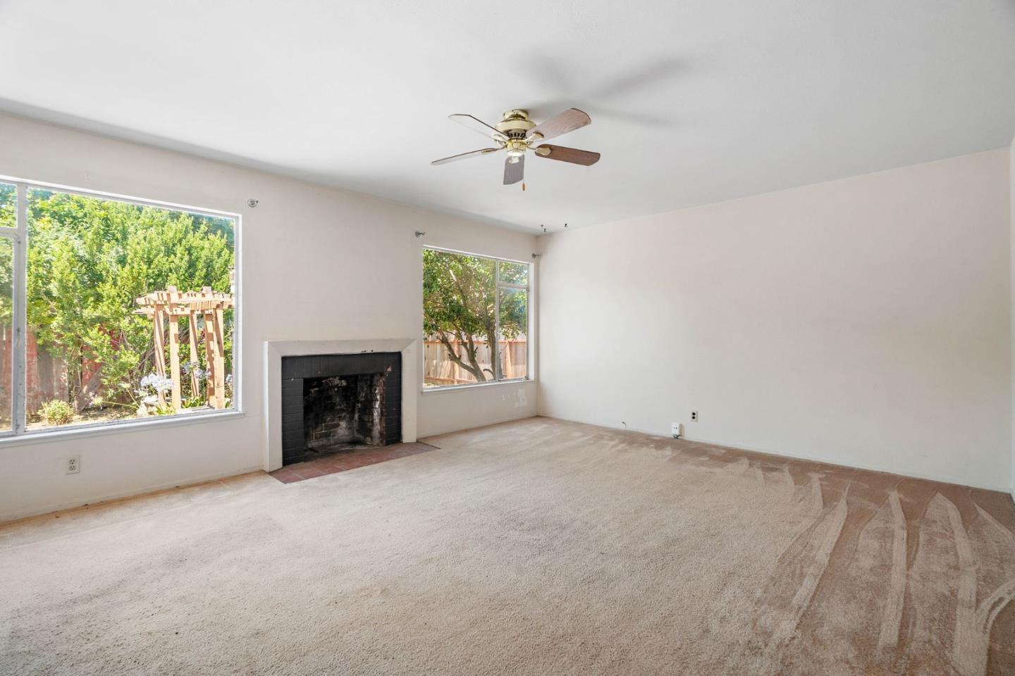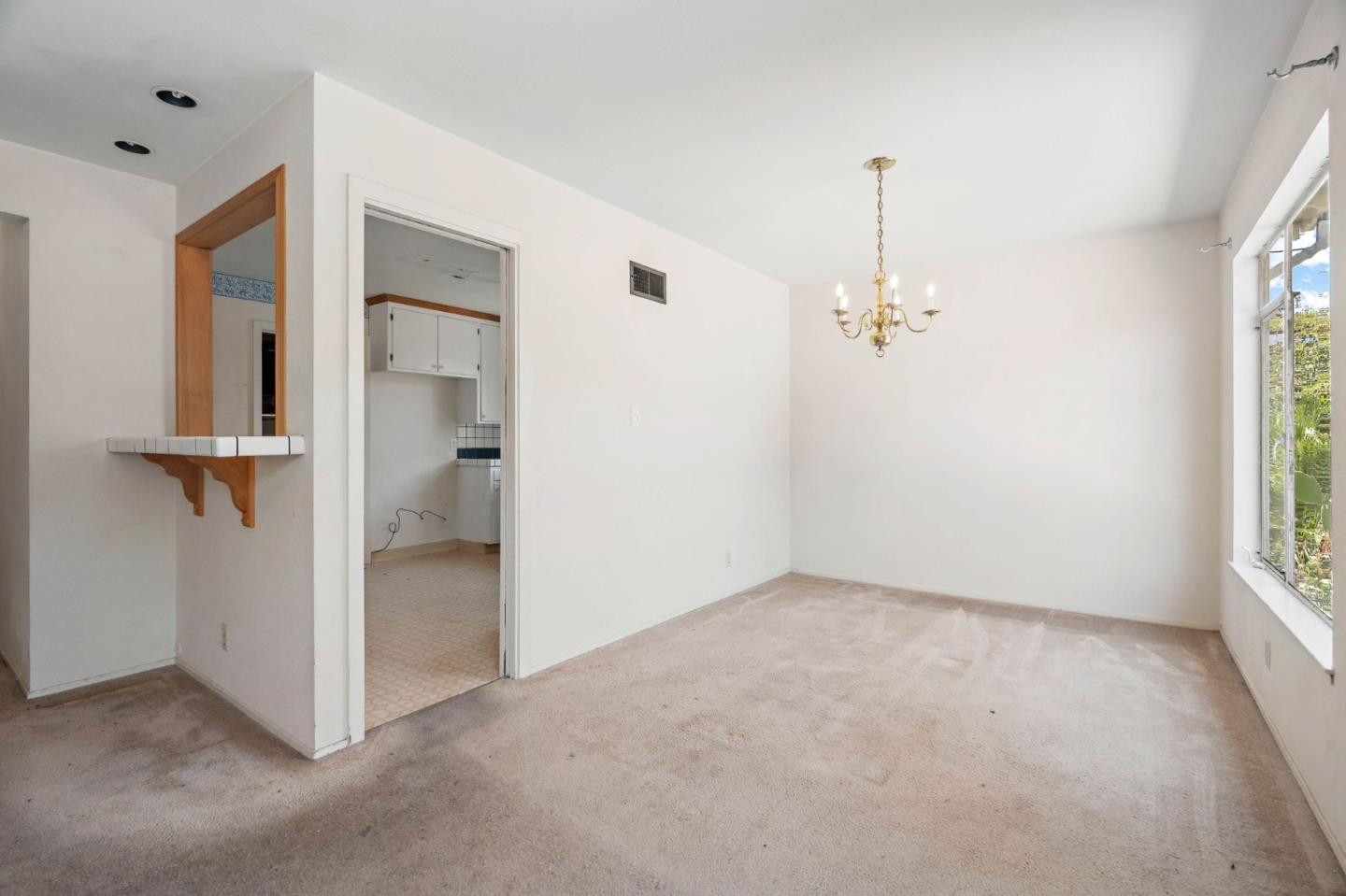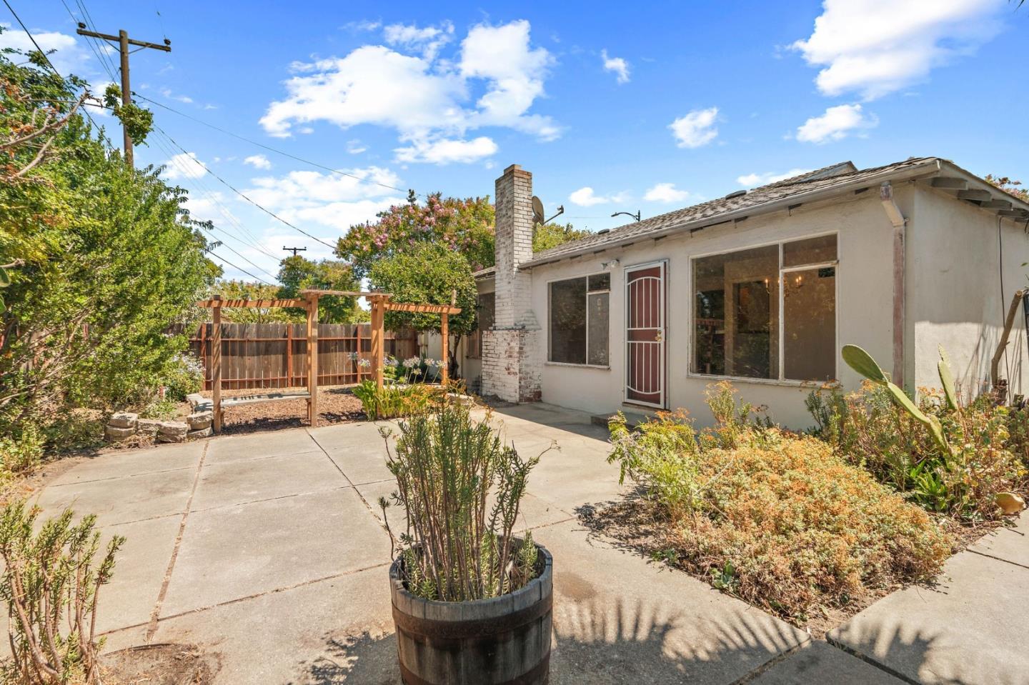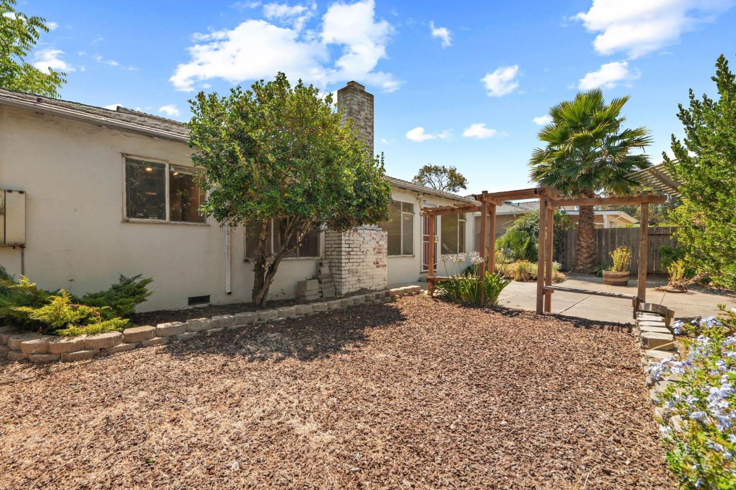 Welcome to this charming fixer-upper, built in 1953, awaiting your personal touch to transform it into your dream home. Located in the highly desirable Cherry Chase neighborhood in west Sunnyvale. Enter through a welcoming hallway complete with a convenient closet.The spacious living room features a cozy wood-burning fireplace, large picture windows that fill the space with natural light, and a ceiling fan for comfort. Adjacent is the dining area with direct access to a backyard. The cozy carpet throughout the living/dining area adds warmth to the atmosphere. The kitchen showcases vinyl flooring, tile cabinets over white wood cabinetry, a passthrough window, and a breakfast bar. With three bedrooms, two equipped with ceiling fans and ample natural light, there's plenty of space for family or guests. The bathroom features a wood vanity and a shower/tub combo with elegant glass doors. Exterior features a 2 car attached garage with workbench and half bathroom, a shaded front yard, while the backyard offers a pergola with seating and a concrete patio perfect for enjoying warm evenings. Located within walking distance to Cherry Chase Elementary and close to parks, shopping, and easy highway access