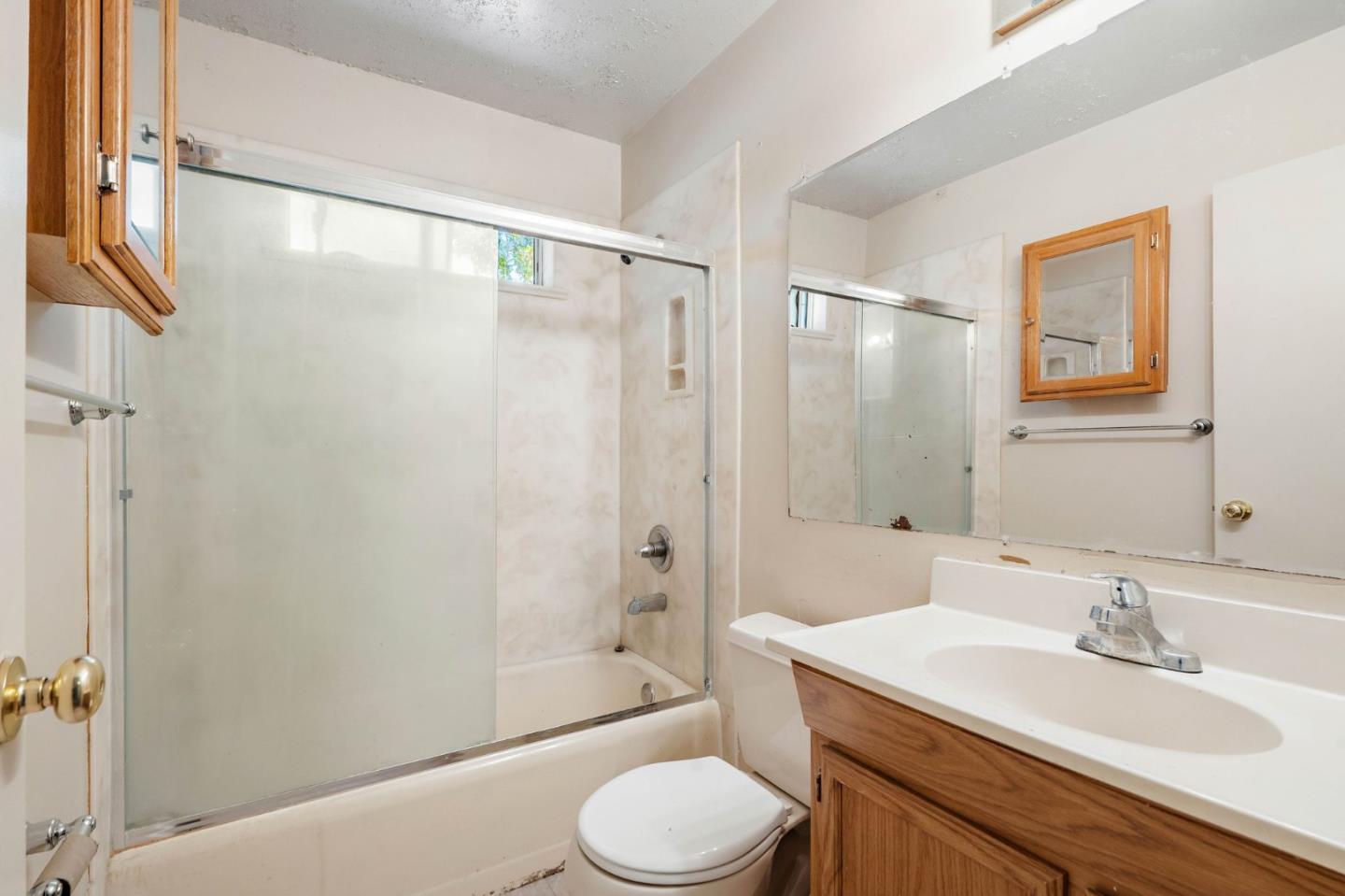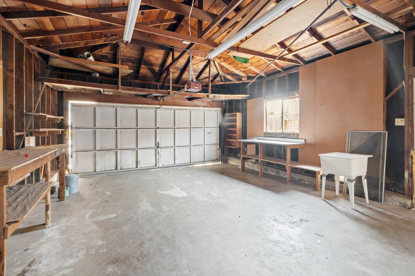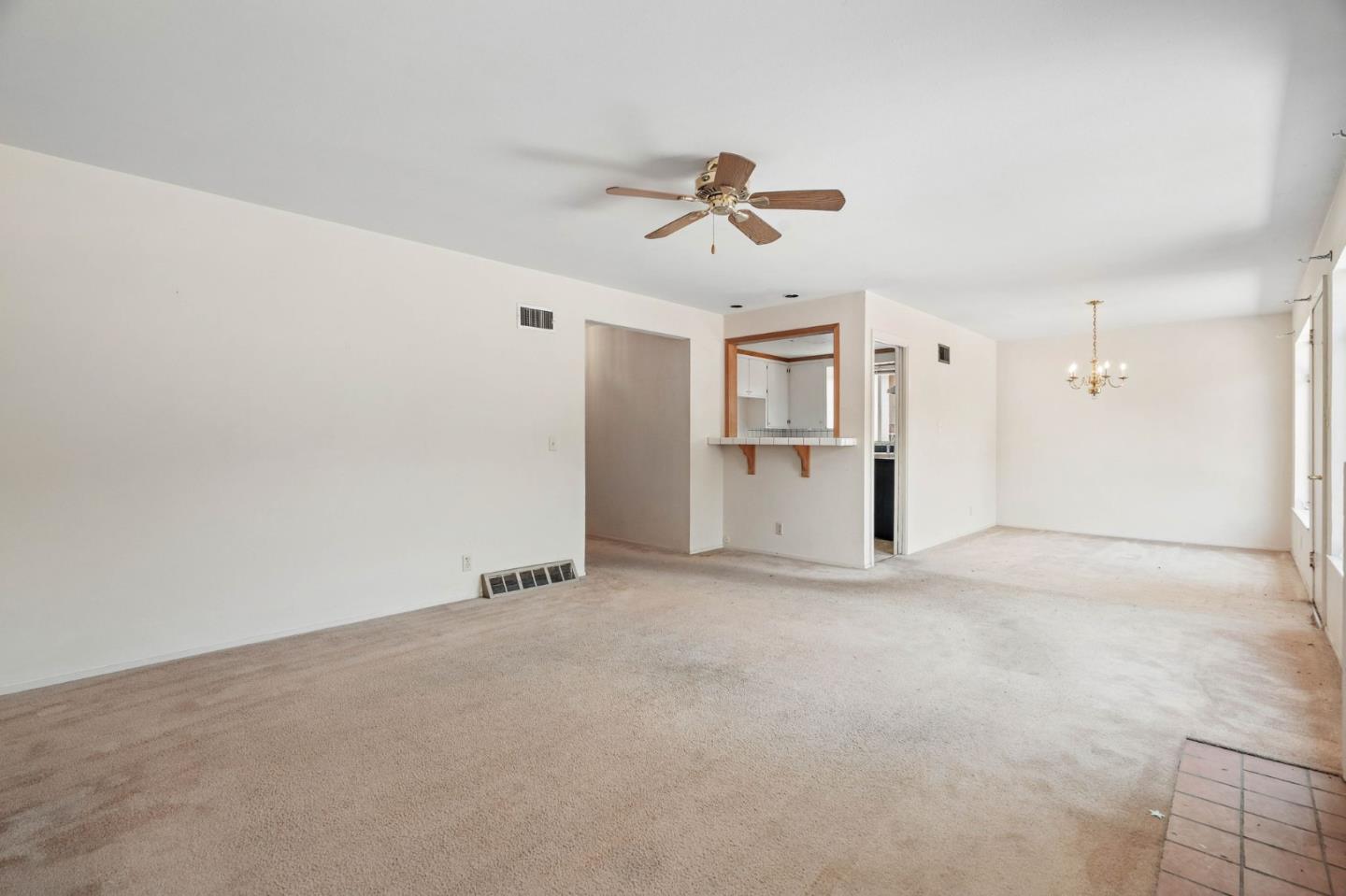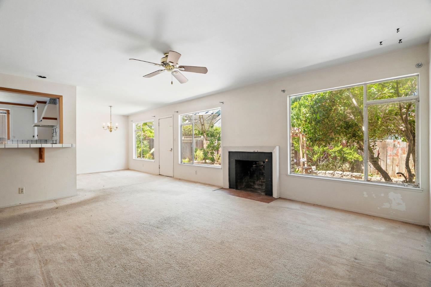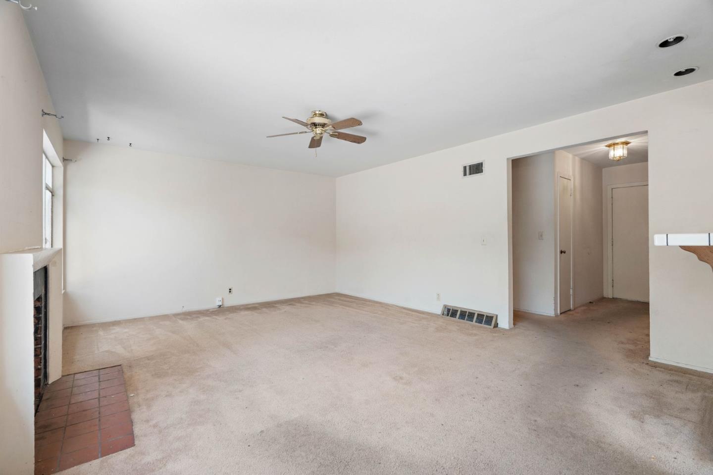 Welcome to this charming fixer-upper, built in 1953, awaiting your personal touch to transform it into your dream home. Located in the highly desirable Cherry Chase neighborhood in west Sunnyvale. Enter through a welcoming hallway complete with a convenient closet.The spacious living room features a cozy wood-burning fireplace, large picture windows that fill the space with natural light, and a ceiling fan for comfort. Adjacent is the dining area with direct access to a backyard. The cozy carpet throughout the living/dining area adds warmth to the atmosphere. The kitchen showcases vinyl flooring, tile cabinets over white wood cabinetry, a passthrough window, and a breakfast bar. With three bedrooms, two equipped with ceiling fans and ample natural light, there's plenty of space for family or guests. The bathroom features a wood vanity and a shower/tub combo with elegant glass doors. Exterior features a 2 car attached garage with workbench and half bathroom, a shaded front yard, while the backyard offers a pergola with seating and a concrete patio perfect for enjoying warm evenings. Located within walking distance to Cherry Chase Elementary and close to parks, shopping, and easy highway access